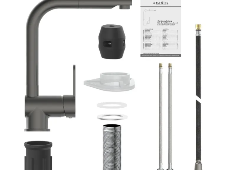 Lieferumfang Ein vollständiges Montageset und eine mehrsprachige, bebilderte Montageanleitung. Die korrosionsbeständigen Anschlussschläuche (400 mm) an das Hauswassersystem sind aus einem flexiblem Metallgewinde und einfach in der Montage.