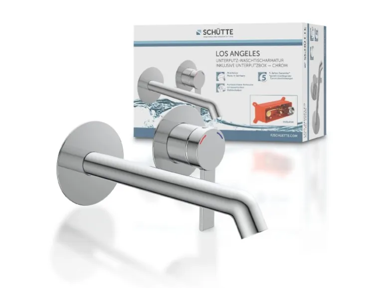 Die Schütte Waschtischarmatur Los Angeles ist eine elegante Design-Waschtischarmatur, die als perfekte Ergänzung für das moderne Bad dient. Sie verfügt über eine geräuscharme, auswechselbare Qualitäts-Kartusche mit langlebigen, keramischen Dichtungen für eine dauerhafte Nutzung. Die moderne, platzsparende Unterputz-Montage ermöglicht eine ansprechende Optik im Badezimmer. Die langlebige Mischdüse vom Markenhersteller sorgt zudem für ein perfektes Strahlbild.