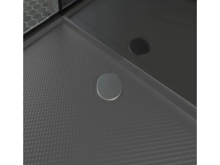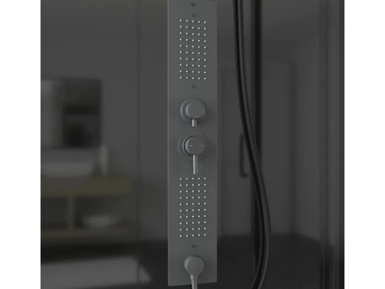 – Die silbergraue Duschwanne rundet den eleganten Look der Komplettduschkabine ab.