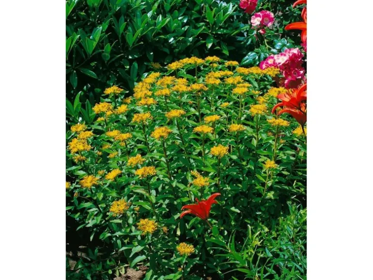 Blüht gelb von Juni bis Juli.