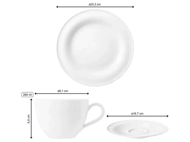 Das Set enthält: 6x Kaffeetasse, 6x Untertasse und 6x Frühstücksteller