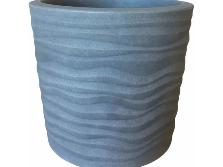 Das Pflanzgefäß verfügt über eine 3D-Wellenoberfläche, wodurch eine variierende Optik je nach Lichteinfall und Schattenwurf entsteht. Darüber hinaus ist das Pflanzgefäß witterungs- und UV-beständig und für den In- und Outdoorbereich geeignet.