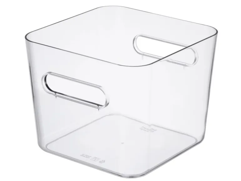 Der Der Compact Clear Square M Behälter eignet sich zur Aufbewahrung von Gläsern, Tuben und anderen Lebensmitteln in der Küche bis hin zu verschiedenen Toilettenartikeln im Badezimmer. Die Behälter lassen sich ohne Deckel ineinander und mit Deckel übereinanderstapeln. Dank der Griffe lässt sich der Behälter leicht anheben und bewegen. Die Deckel sind separat erhältlich. Alle Compact-Produkte sind aus hochwertigem Material gefertigt, das leicht von Hand oder in der Spülmaschine zu reinigen ist. Hergestellt in Finnland aus lebensmittelechtem SAN-Kunststoff mit einem Anteil von 20 % erneuerbaren Rohstoffen (zugewiesen über ISCC-Mass Balance).