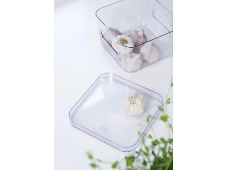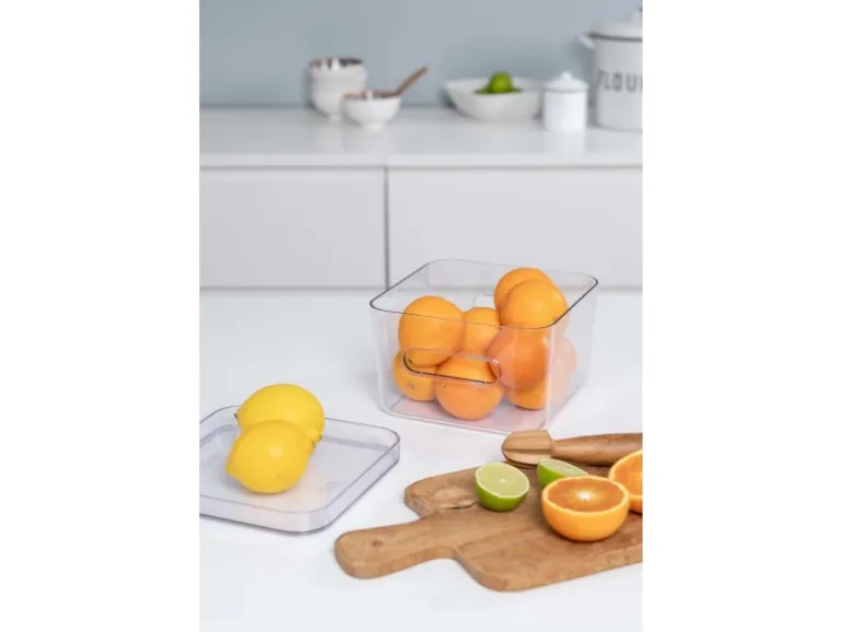 Der Der Compact Clear Square M Behälter eignet sich zur Aufbewahrung von Gläsern, Tuben und anderen Lebensmitteln in der Küche bis hin zu verschiedenen Toilettenartikeln im Badezimmer. Die Behälter lassen sich ohne Deckel ineinander und mit Deckel übereinanderstapeln. Dank der Griffe lässt sich der Behälter leicht anheben und bewegen. Die Deckel sind separat erhältlich. Alle Compact-Produkte sind aus hochwertigem Material gefertigt, das leicht von Hand oder in der Spülmaschine zu reinigen ist. Hergestellt in Finnland aus lebensmittelechtem SAN-Kunststoff mit einem Anteil von 20 % erneuerbaren Rohstoffen (zugewiesen über ISCC-Mass Balance).