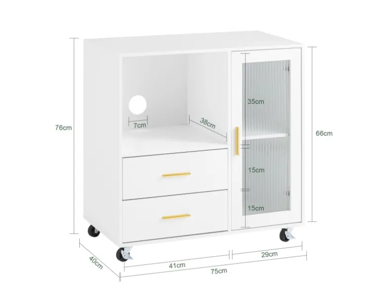 Das geräumige Fach eignet sich perfekt für Mikrowelle oder Drucker und verfügt über Kabeldurchlässe.