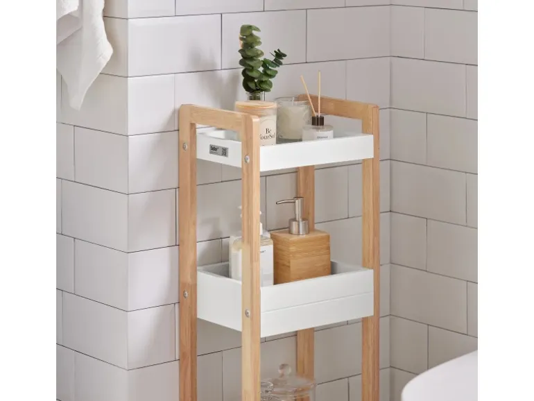 Das kleine Badeablagen ist eine elegante und platzsparende Lösung für viel Stauraum, falls du in deinem Badezimmer nur wenig Platz für Kosmetika und Badutensilien hast.