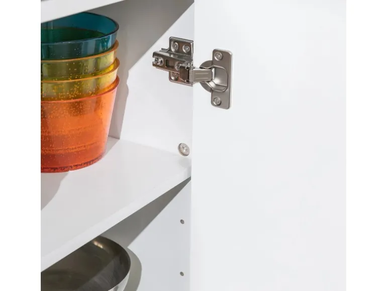Mit 2 Schubladen und 2 Türen für zusätzlichen Stauraum; die 2 Regale hinter den Türen lassen sich in 3 Positionen verstellen.