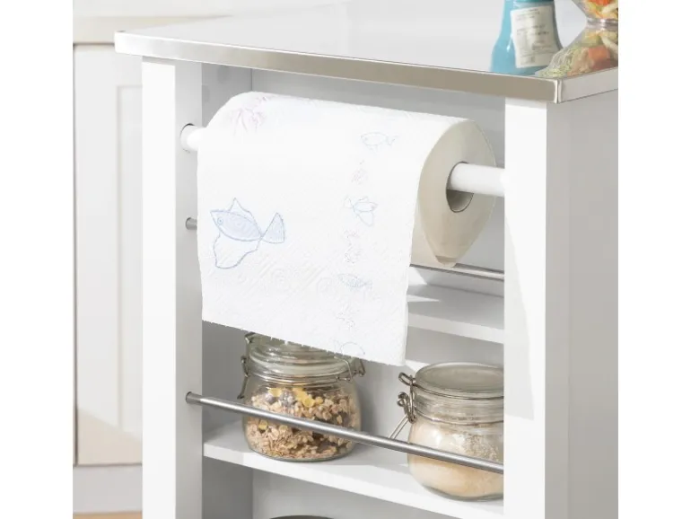 Die 3 Seitenablagen und der Küchenrollenhalter ermöglichen es dir, Getränke, Tassen, Handtücher, Küchenrollen und alles andere, was du brauchst, immer griffbereit zu haben.