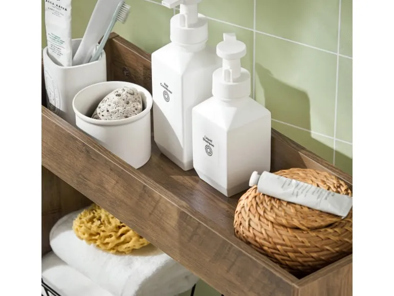 Drei Etagen bieten eine Menge Stauraum für Ihre Gewürze, Badeutensilien, usw.