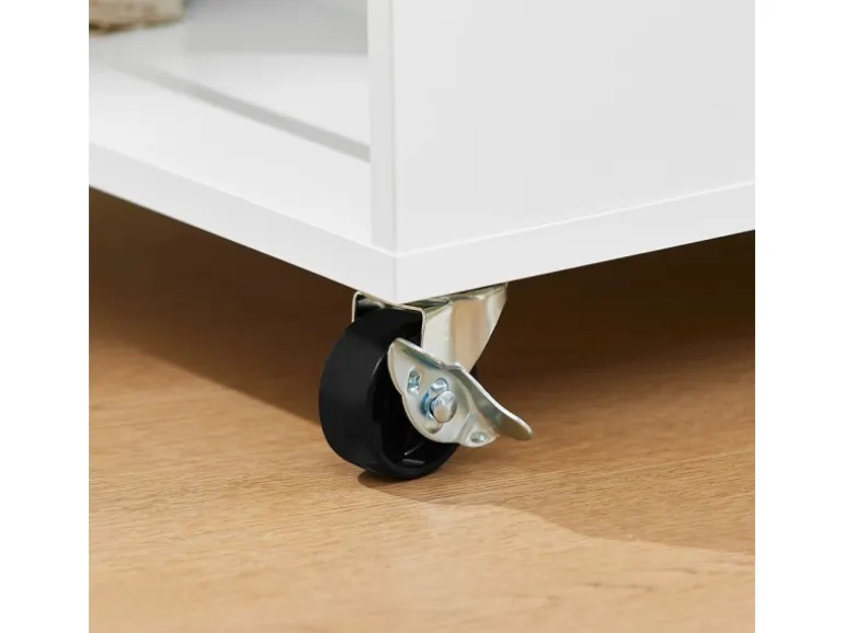 Zwei der Räder sind abschließbar, was für Stabilität sorgt, wenn der Küchenwagen stationär ist.