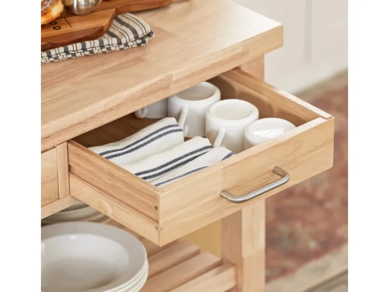 Hergestellt aus stabilem Kautschukholz, ist der Rollwagen robust, langlebig und bietet exzellente Stabilität für den täglichen Küchen.