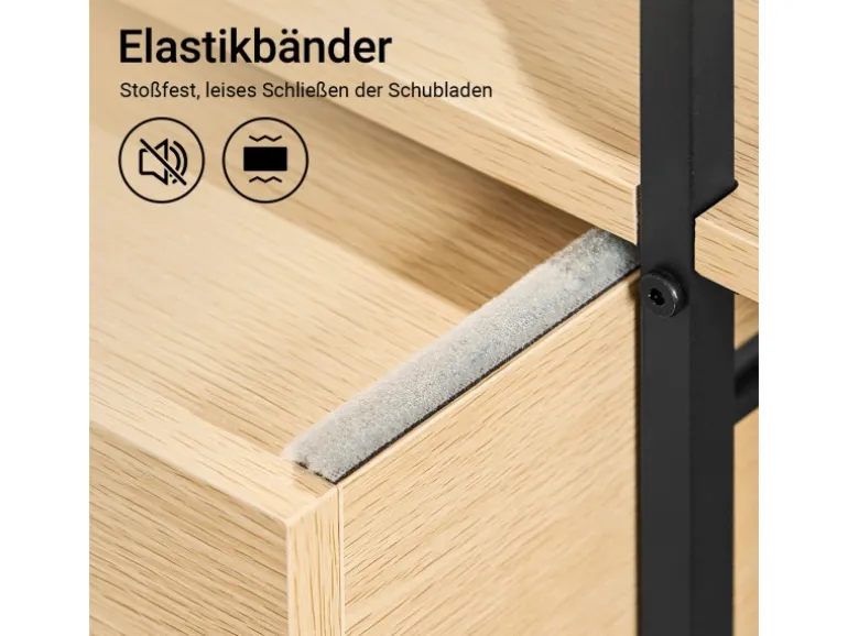 Aus Holzplatten und Stahl gefertigt, robust und belastbar für den täglichen Gebrauch.