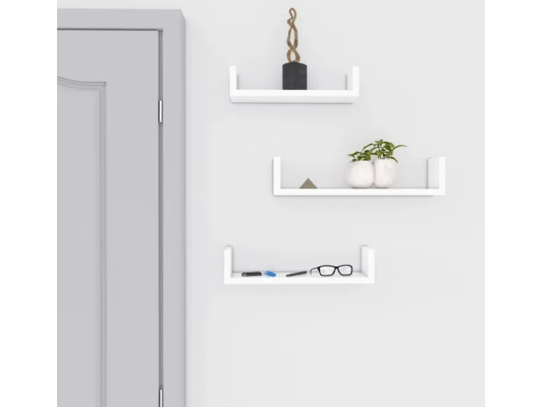 Löcher in die Wand bohren, Schweberegale mit den beiliegenden Schrauben an der Wand befestigen. Zudem liefern wir eine bebilderte Anleitung mit3 Schweberegale in einzigartiger U-Form, die keine Bodenfläche einnehmen und trotzdem zusätzlichen Stauraum im Wohnzimmer, Homeoffice, Badezimmer oder in der Küche schaffen.