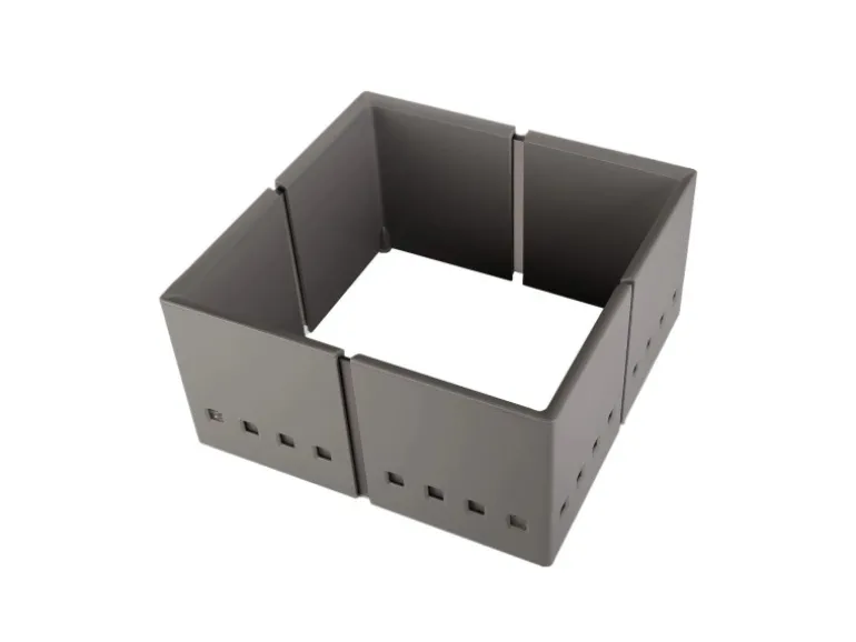 – Einfarbige Eckstücke in Aluminiumgrau, Mittelteile Weiß transluzent