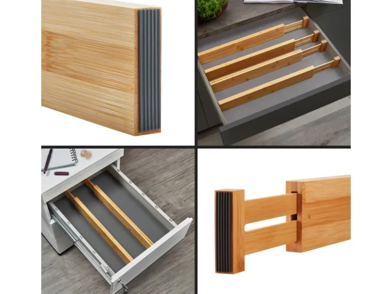 4-teiliges ORGA BOX Bambus Schubladen Trennsystem 430 – 556 mm mit Federmechanismus