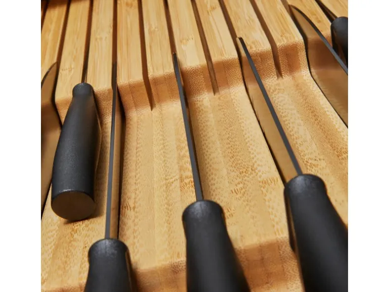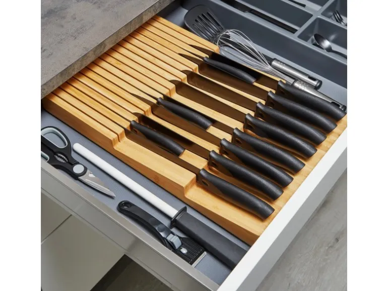 Dieser Messereinsatz bringt Ordnung und Sicherheit in Ihre Küche und sorgt dafür, dass Ihre Messer ordentlich verstaut und jederzeit griffbereit sind.