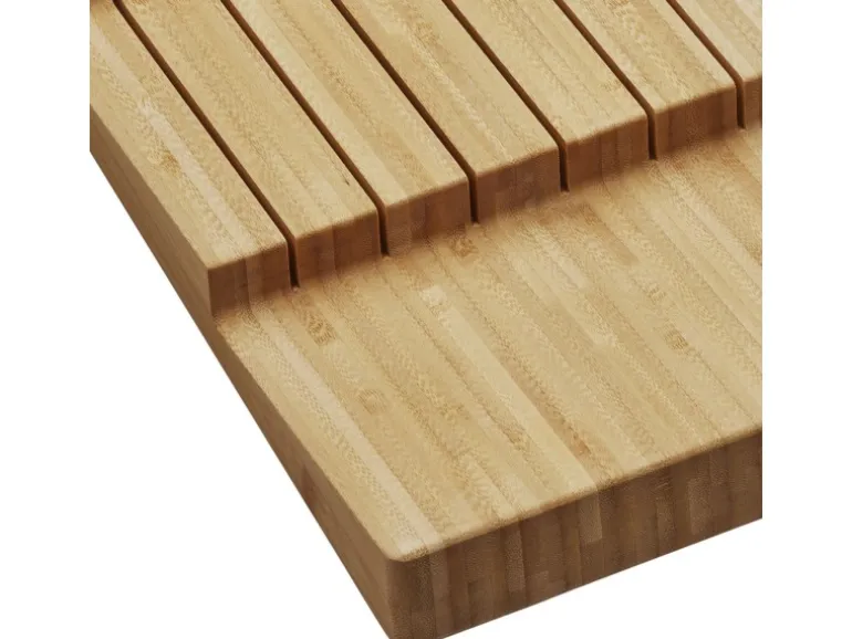 Mit diesem hochwertigen Messereinsatz aus Bambus haben Sie Ihre Messer immer griffbereit und sicher verstaut. Der Einsatz ist für Schubladen mit einem Innenmaß von mindestens 473 x 310 mm geeignet und bietet Platz für mehrere Messer unterschiedlicher Größe. Die präzise gearbeiteten Schlitze sorgen für eine sichere Aufbewahrung und schützen Ihre Messer vor Beschädigungen.
