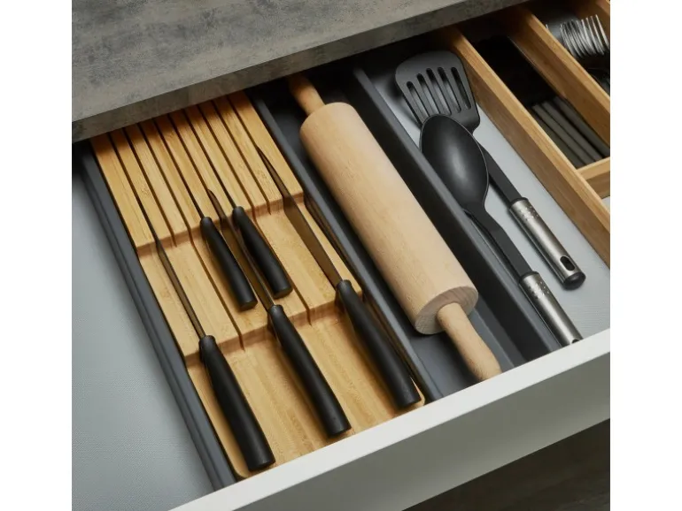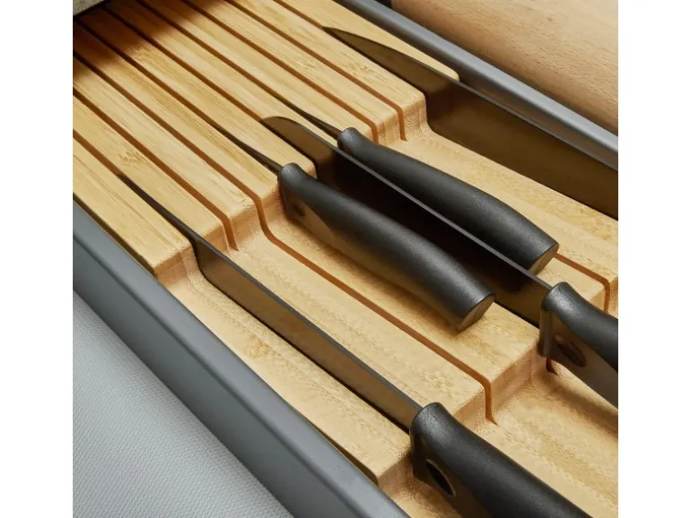 Ordnung und Stil vereinen sich in diesem hochwertigen Bambus Messereinsatz, der passgenau für den Mehrzweckeinsatz SEPARADO Individual entwickelt wurde. Gefertigt aus Bambus, bietet er Platz für mehrere Messer unterschiedlicher Größe. Die präzise gearbeiteten Schlitze sorgen für eine sichere Aufbewahrung und schützen Ihre Messer vor Beschädigungen.