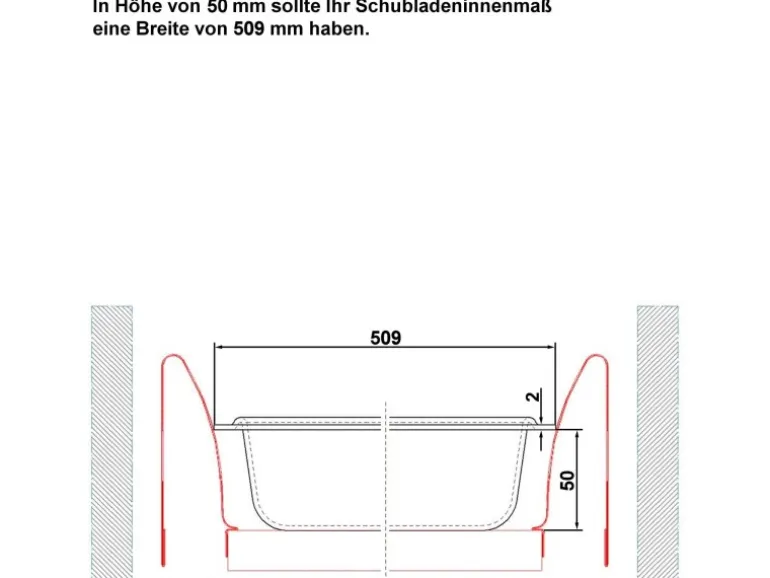 Breite 509 mm – Für Korpusbreite von 600 mm / BITTE MESSEN SIE IHR SCHUBLADENINNENMASS
