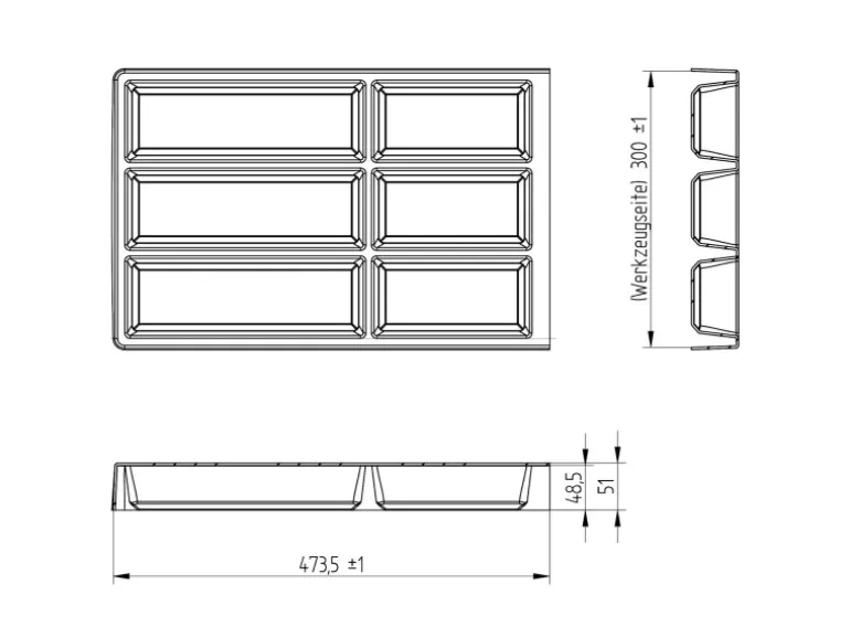 Abmessungen Breite 300 mm, Tiefe 474 mm, Höhe 51 mm