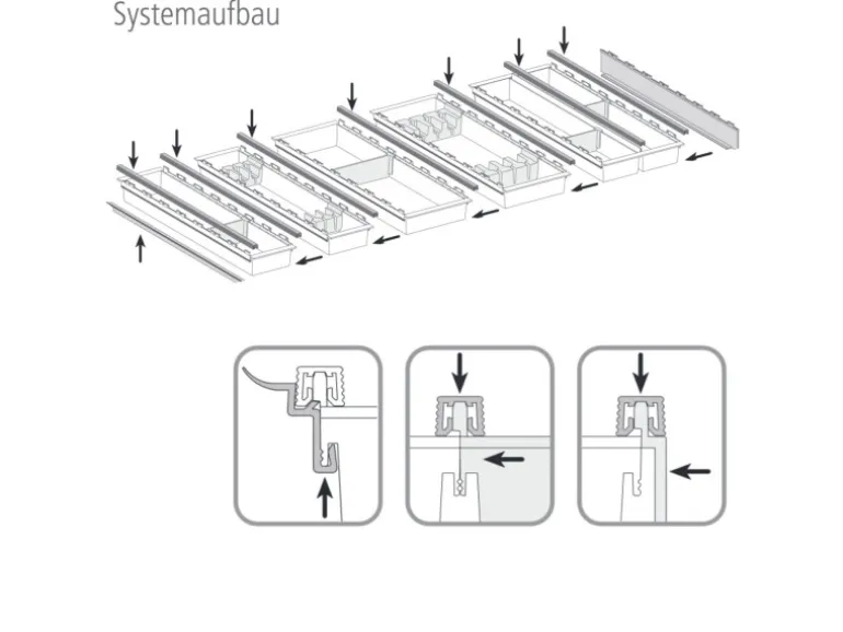 Individuelle Inneneinteilung durch im Raster versetzbare Trennstege