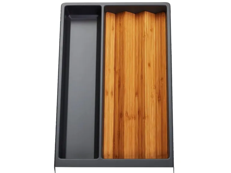 In größeren Schubladen können Sie die Einsätze frei kombinieren. Z. B. ein Besteckeinsatz mit einem Mehrweckeinsatz.