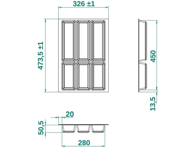 Tiefe 473,5 mm – Für Schubladentiefe von 500 mm / Höhe 53 mm / Materialstärke 2,5 mm