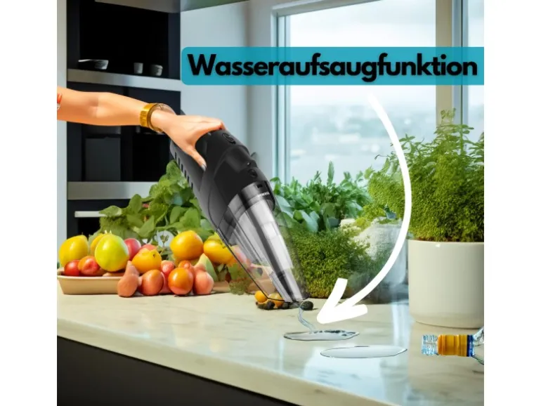 Ebenso können mit dem Handstaubsauger mühelos Flüssigkeiten aufgesaugt werden.