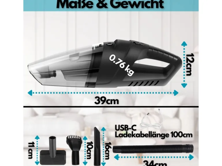 Zudem ist dieser Handstaubsauger mit seiner kompakten Größe und dem Gesamtgewicht von nur 0,52 kg ein Leichtgewicht und ermöglicht ein ermüdungsfreies Arbeiten.