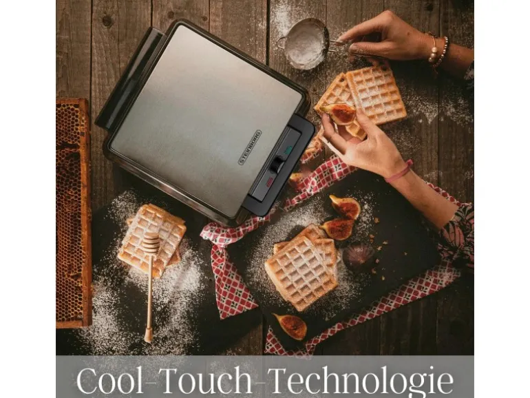 Das wärmeisolierte Gehäuse bleibt auch während des Betriebs angenehm kühl. So lässt sich das Waffeleisen sicher handhaben, ohne Verbrennungsgefahr.