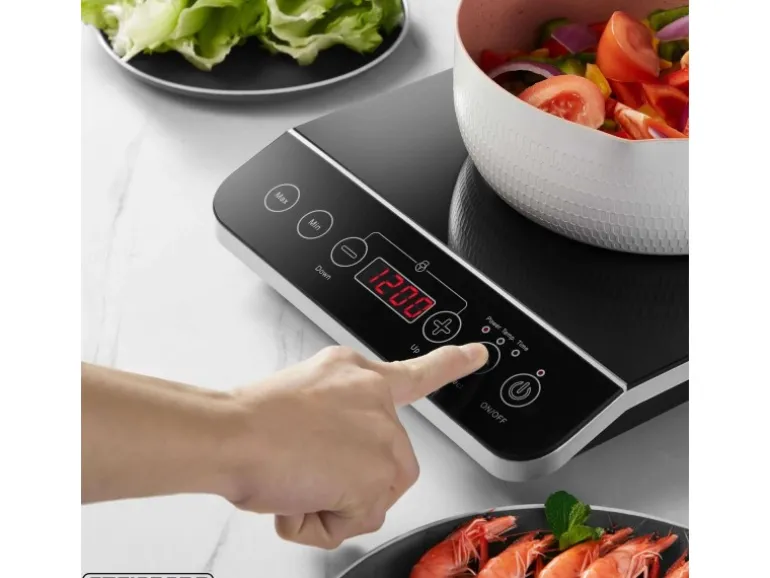 Mit zehn einstellbaren Temperaturstufen zwischen 60°C und 240°C haben Sie verschiedene Zubereitungsmöglichkeiten. Die Leistungsspanne von 200 W bis 2.000 W bietet für verschiedene Gerichte die passende Einstellung. Die gewählte Temperatur wird nach dem Erreichen gehalten.