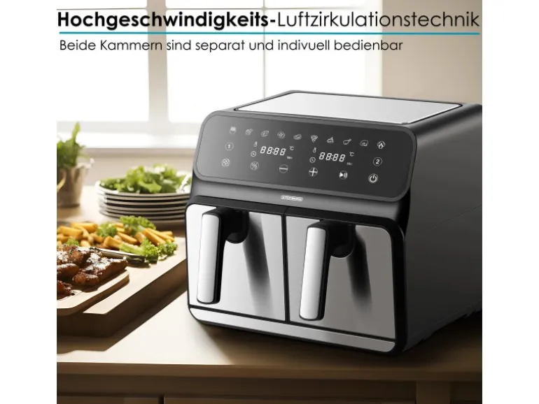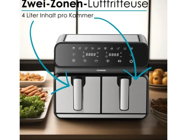 4+4 Liter Zwei-Zonen-Luftfritteuse