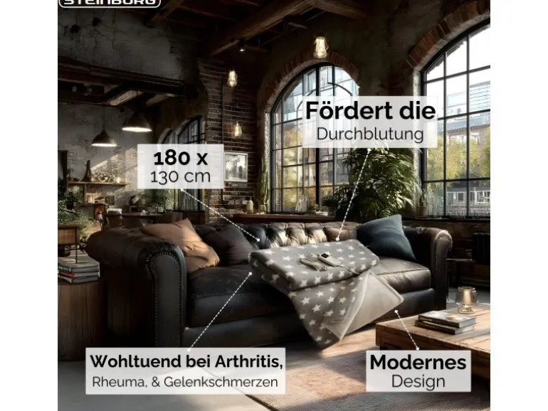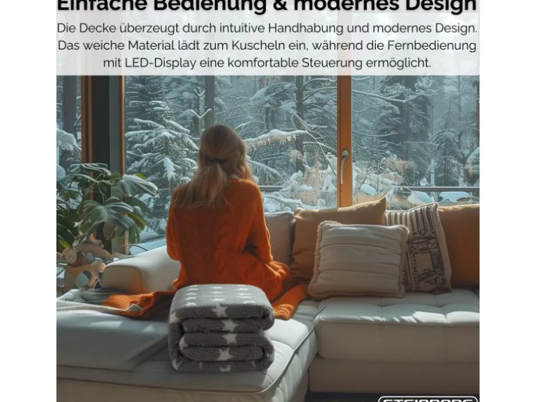 9 Temperaturstufen für individuelle Wärme9 Timer-Einstellungen mit automatischer AbschaltungLED-Fernbedienung für einfache SteuerungSchnelle Aufheizzeit und gleichmäßige WärmeverteilungAngenehm bei Verspannungen oder KältegefühlMaschinenwaschbar bei 30 °C dank abnehmbarem BedienelementÜberhitzungsschutz für sichere AnwendungGroße Maße: 180 × 130 cm – ideal zum ZudeckenWeiches, anschmiegsames Material