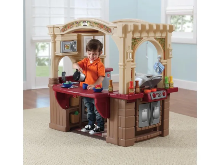 Diese Step2 Spielküche ist ideal für mehrere Kinder, da sie viel Platz zum Spielen bietet und mit einem angeschlossenen Essbereich, einem Edelstahl-Kühlschrank und Spielzeugküchengeräten ausgestattet ist. Die Kinder werden stundenlang beschäftigt sein und ihre Kreativität ausleben können.