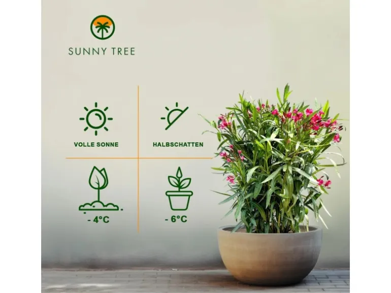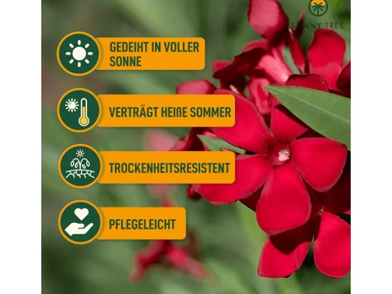 Sunny Tree Oleander – Rot – 80/100 cm – Immergrüne Pflanze für draußen – Mediterrane Blütenpracht