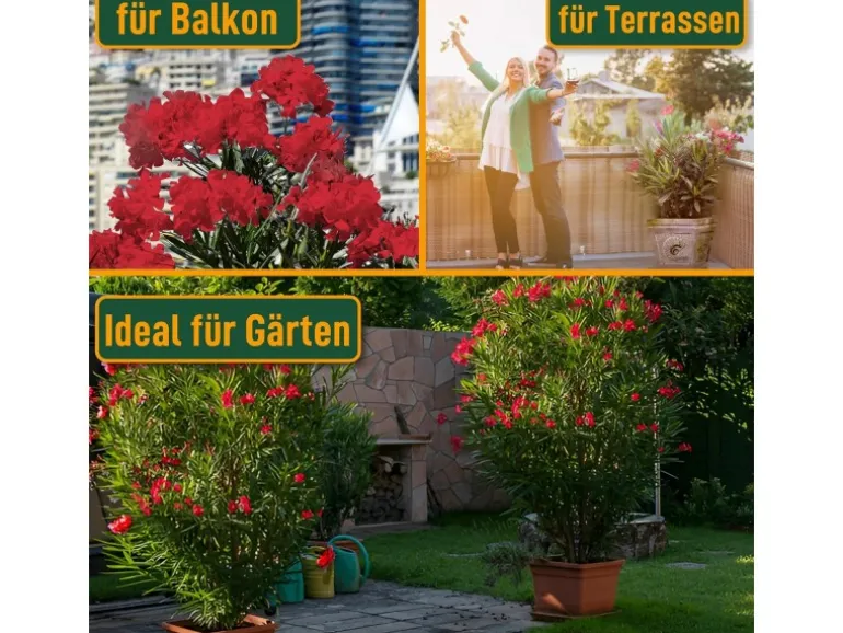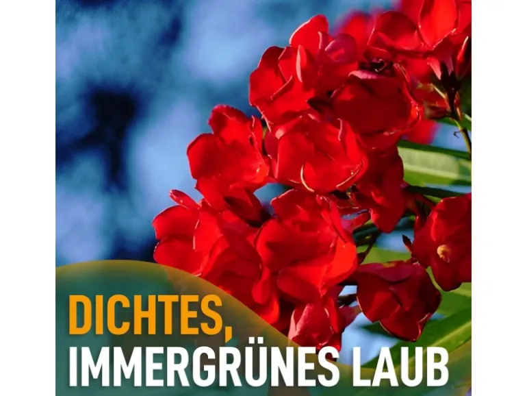 Nerium Oleander ist eine immergrüne, pflegeleichte Pflanze mit langen Blättern und üppiger Blüte