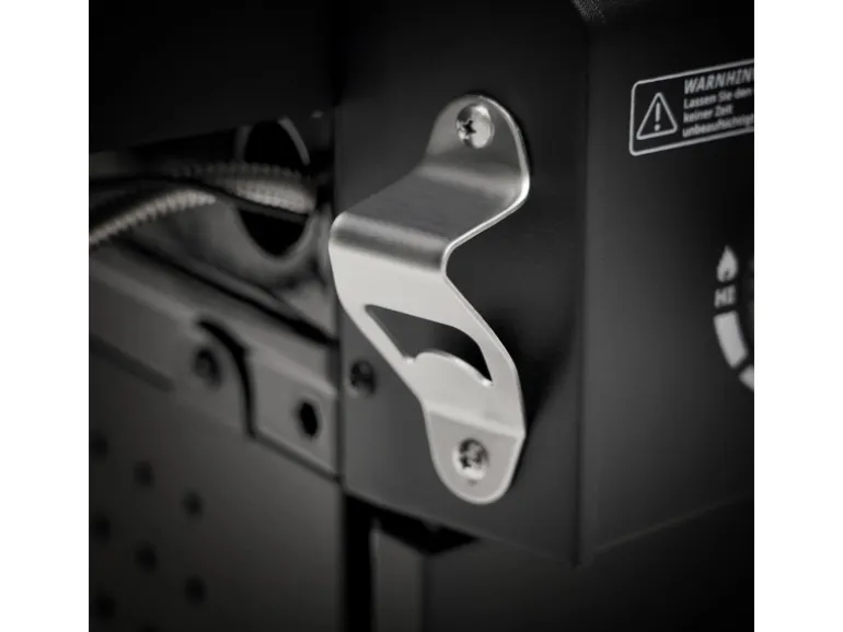 Ein Thermometer, ein Flaschenöffner sowie ein Warmhalterost runden die Ausstattung des Grills ab