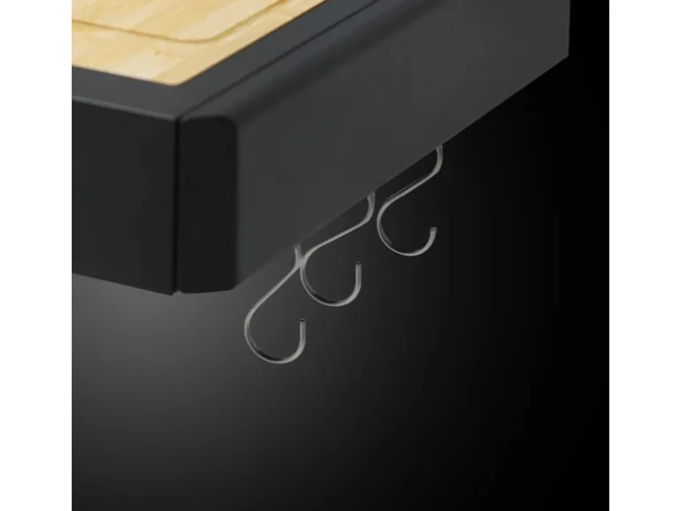 Seitentisch mit Auffangbehälter (Edelstahl), Deckel & Schneidebrett (Bambus)