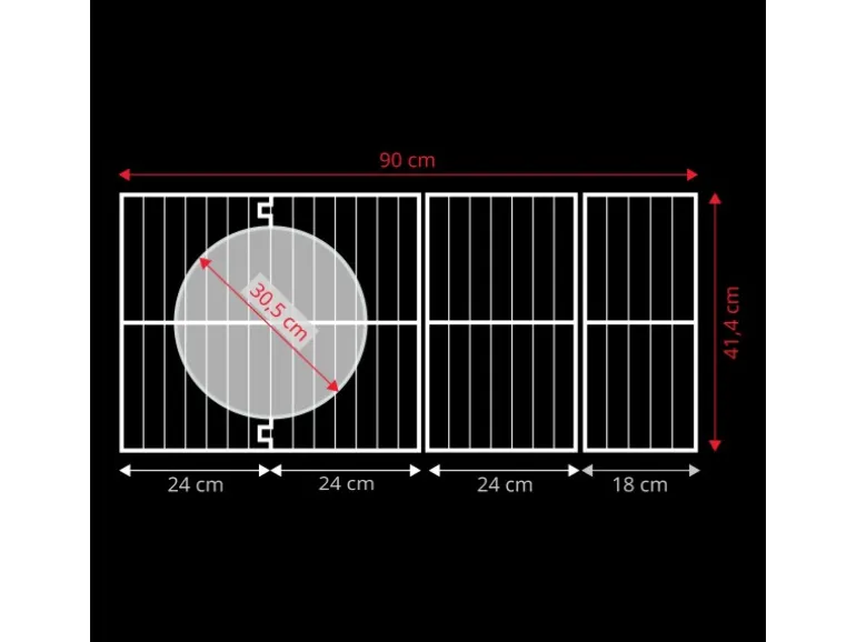 Grillfläche: ca. 90 x 41,4 cm (5-tlg.) aus Gusseisen inkl. herausnehmbarem Rundelement (Ø ca.30,5 cm)