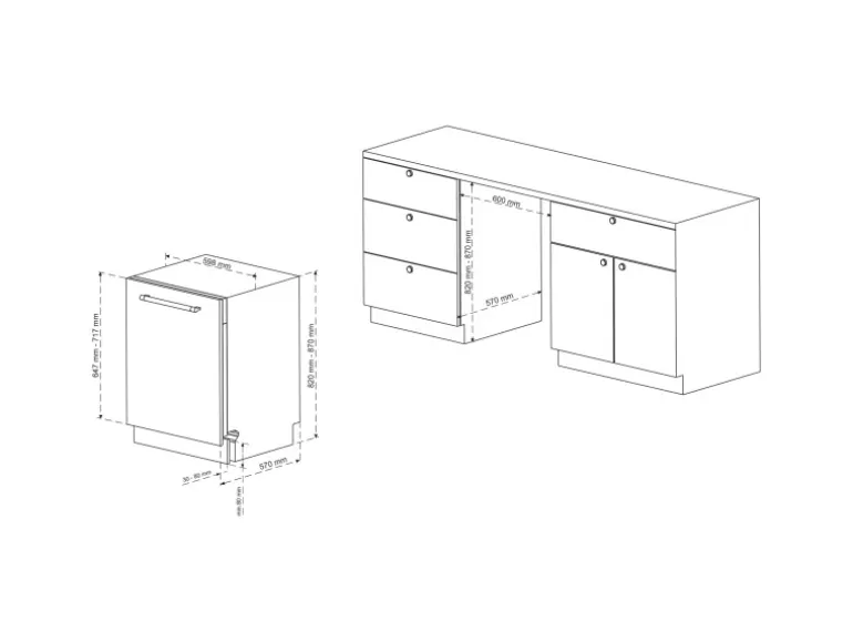Einbaumaße – Breite 60 cm x Höhe 82-87 cm x Tiefe 60 cm