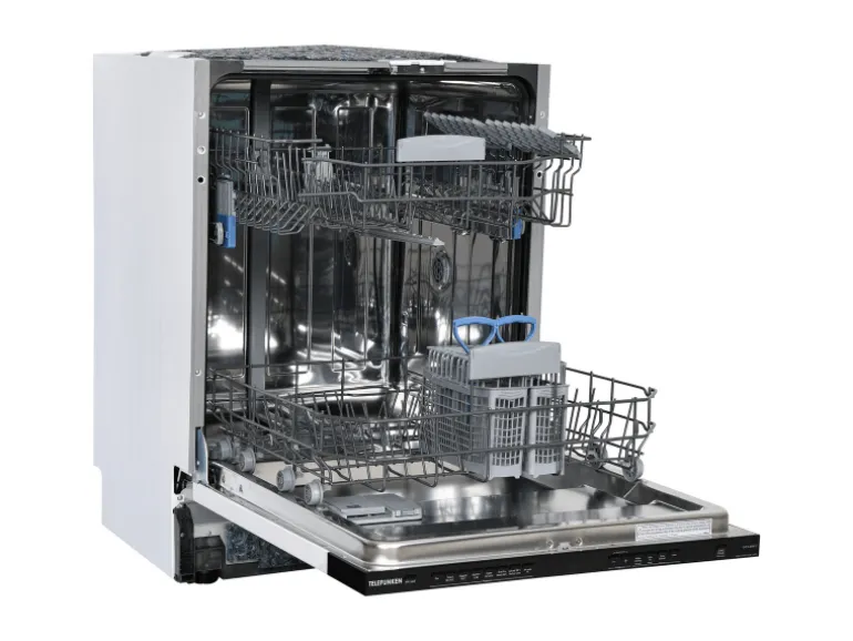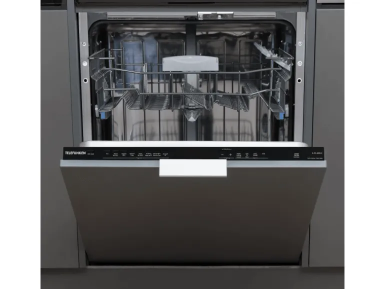 „Entdecken Sie den vollintegrierten Geschirrspüler G-EV-6014-C von Telefunken mit beeindruckender Leistung und umfangreicher Ausstattung. Mit einer Kapazität von 12 Standardgedecken bietet er ausreichend Platz für Ihr Geschirr und gewährleistet Langlebigkeit und Hygiene durch seinen Edelstahl-Spülbehälter. Keine Sorgen mehr wegen möglicher Wasserschäden! Unsere Spülmaschine ist mit einem Aquastoppschlauch sowie einem Überlauf- und Rücklaufschutz ausgestattet, der Lecks automatisch erkennt und den Wasserfluss stoppt. Die Höhenverstellbarkeit des Geschirrspülers um bis zu +5 cm ermöglicht eine flexible Anpassung an Ihre Einbaumaße. Die elegante schwarze Bedienoberfläche und die stilvollen grauen Körbe sorgen für ein harmonisches Gesamtbild in Ihrer Küche. Insgesamt stehen Ihnen folgende 9 Programme zur Auswahl: Mini 14′ / Schnell 30′ / Spar+ 5.4 l / Dual Pro Wash 60°C / Super 50′ / Smart 50°C – 70°C / Hygiene 70°C / Machine Clean. Unsere automatische Türöffnungsfunktion trocknet Ihr Geschirr effektiv und erhöht gleichzeitig Ihren Benutzerkomfort. Die zuverlässige Kindersicherung bietet zusätzliche Sicherheit, indem sie versehentliches Öffnen während des Betriebs verhindert. Maximale Flexibilität wird durch den höhenverstellbaren Oberkorb und den praktischen Besteckkorb gewährleistet, während zusätzliche Features wie eine Salznachfüllanzeige, Klarspülanzeige, Startzeitvorwahl, Restlaufanzeige, Edelstahl-Filter, Durchlauferhitzer und LED-Display weiteren Komfort und Vielseitigkeit bieten. Mit einem niedrigen Energieverbrauch von nur 0,725 kWh pro Zyklus und einem Wasserverbrauch von 9 Litern pro Zyklus ist unser Geschirrspüler kosteneffizient. Dank seiner Trocknungseffizienzklasse A und einem angenehm leisen Betriebsgeräusch von nur 44 dB(A) sorgt er für eine ruhige Umgebung in Ihrer Küche.“
