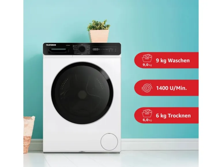Erleben Sie die perfekte Kombination aus Waschen und Trocknen mit dem Telefunken Frontlader Waschtrockner. Mit seiner großzügigen Nennkapazität von 9 kg beim Waschen und 6 kg beim Trocknen eignet sich dieses Gerät ideal für Familien oder Haushalte mit hohem Wäscheaufkommen. Die hochwertige Edelstahl Schontrommel sorgt für sanfte Pflege Ihrer Textilien, während 15 Programme für jede Wäscheart eine optimale Reinigung garantieren. Top Features: Großzügiges Fassungsvermögen: 61 Liter Trommelvolumen, ideal für große Wäscheladungen Leistungsstarke Schleuderdrehzahl: Bis zu 1400 U/Min. für schnelle und effektive Wasserentfernung Vielfältige Programme: Eco 40-60, Baumwolle, Pflegeleicht, Wolle, Daunen, Allergie, Schnellwaschprogramme uvm. Waschen & Trocknen in einem Gerät: Praktische Kombi-Programme für Wasch- und Trockenzyklen Inverter Motor: Effizienter, langlebiger und besonders leiser Motorbetrieb mit reduzierter Vibration und geringem Verschleiß Benutzerfreundlich: LED-Display, Startzeitvorwahl, Restlaufanzeige und elektronische Steuerung Sicherheit: Aquastoppschlauch, Überlaufschutz und Kindersicherung für sorgenfreies Waschen und Trocknen