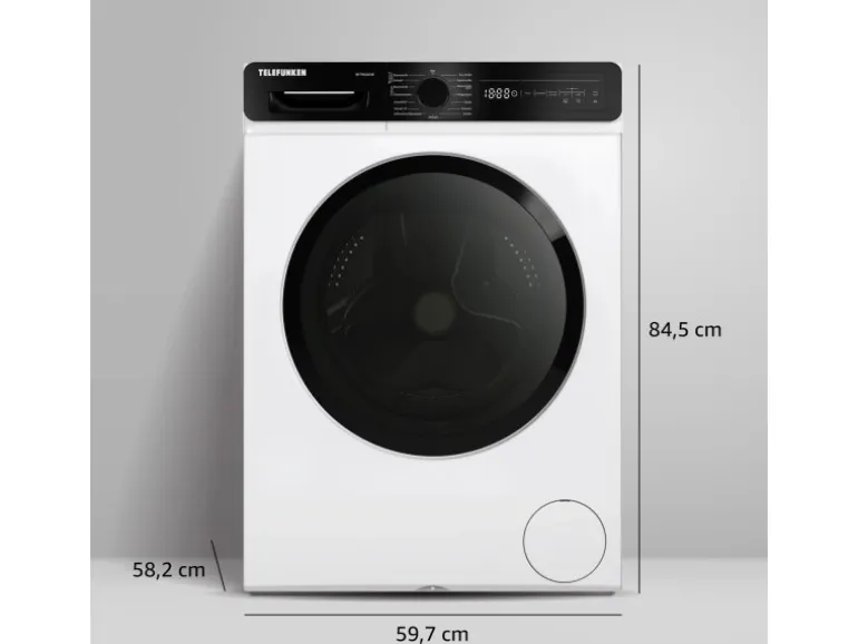 Leise im Betrieb: Mit 74 dB Geräuschpegel angenehm leise im Wasch- und Trockenmodus Die Telefunken Waschmaschine mit Trockner integriert überzeugt durch ihre hochwertige Verarbeitung, das schlichte weiße Design und die einfache Bedienung. Die Kombination aus innovativer Technik und praktischen Funktionen macht sie zu einem zuverlässigen Partner für den Alltag.