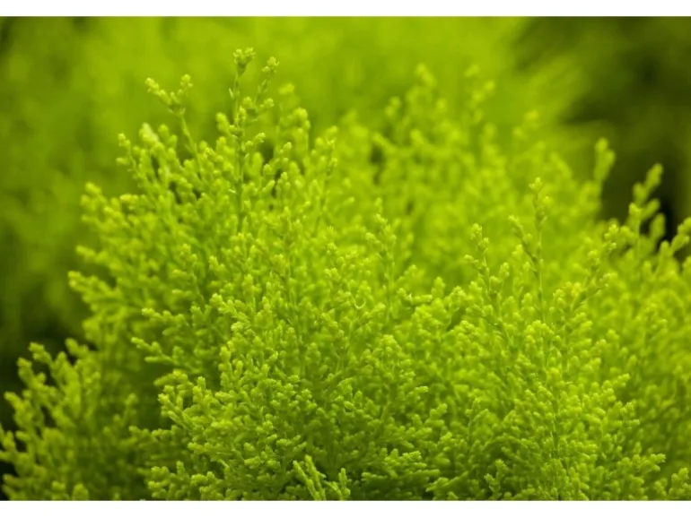 Die Thuja orientalis ‚Aurea Nana‘ wächst buschig und kompakt.