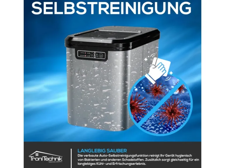 Schnelle Produktion: Innerhalb weniger Minuten liefert die Maschine kristallklare, perfekt geformte Eiswürfel. Nie wieder warten Sie auf das Einfrieren im Gefrierfach.