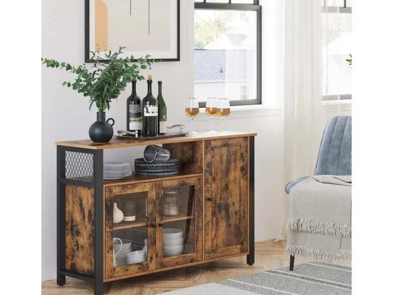 1 offenes Fach, 1 Schrank mit Klarsichttür und 1 Schrank mit Lamellentür