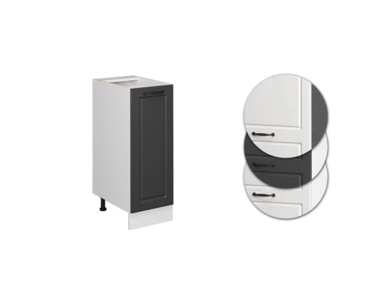 Der Küchenunterschrank hat Breite 30 cm, Höhe 81,6 cm und Tiefe 46 cm