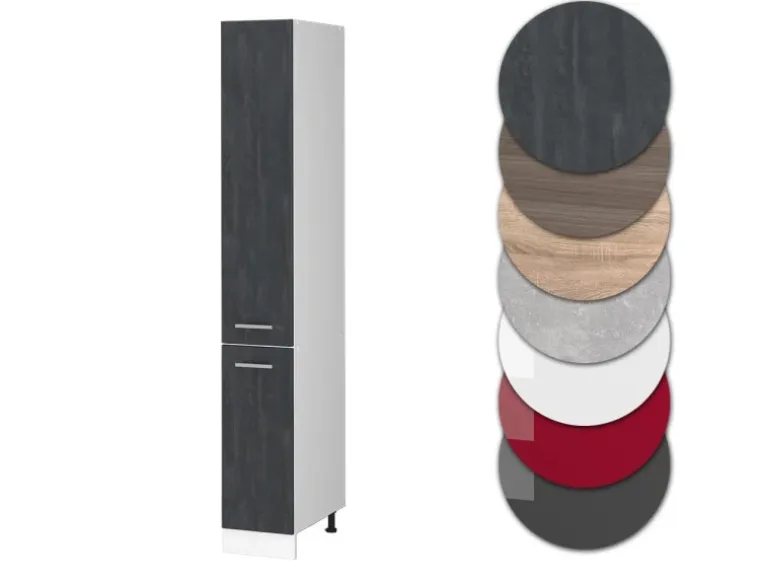 Das Küchenmöbelstück besteht aus pflegeleichter, melaminharzbeschichteter 16 mm Spanplatte.