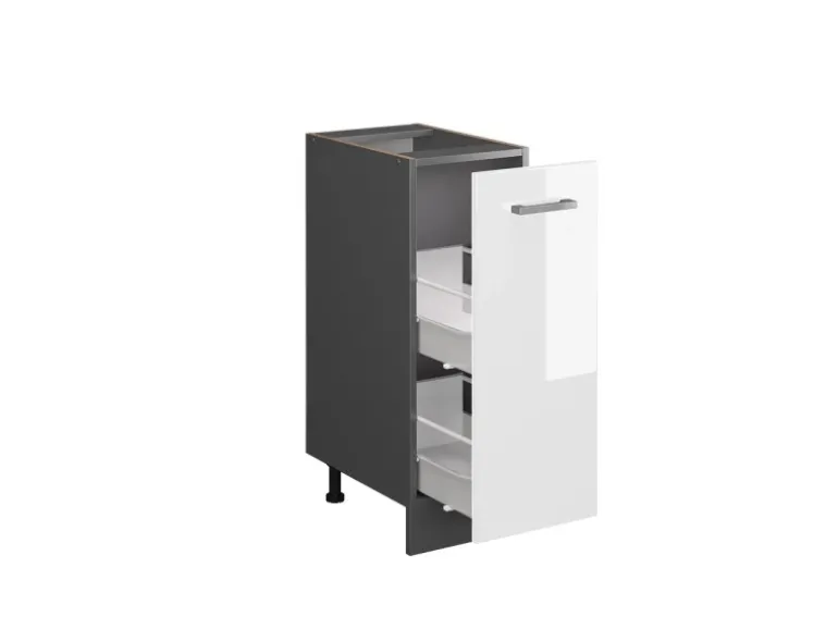 Das Küchenmöbelstück besteht aus pflegeleichter, melaminharzbeschichteter 16 mm Spanplatte.