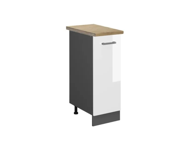 Der Küchenunterschrank inkl. Arbeitsplatte hat Breite 30 cm, Höhe 81,6 cm und Tiefe 60 cm